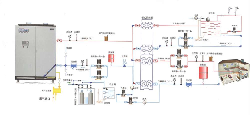 德菲爾曼全預(yù)混冷凝鍋爐采用全預(yù)混燃燒原理,使燃燒空氣和燃?xì)獍凑兆罴鸦旌媳热紵F胀ㄥ仩t無法吸收煙氣中汽化潛熱。對(duì)于德菲爾曼全預(yù)混冷凝鍋爐,當(dāng)回水溫度低于50℃時(shí),能夠產(chǎn)生非常好的冷凝效果,此時(shí)排煙溫度非常低,遠(yuǎn)低于目前國家規(guī)定的燃?xì)鉄崴仩t的排煙溫度標(biāo)準(zhǔn),熱效率遠(yuǎn)遠(yuǎn)高于常規(guī)普通鍋爐。